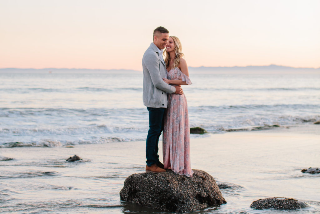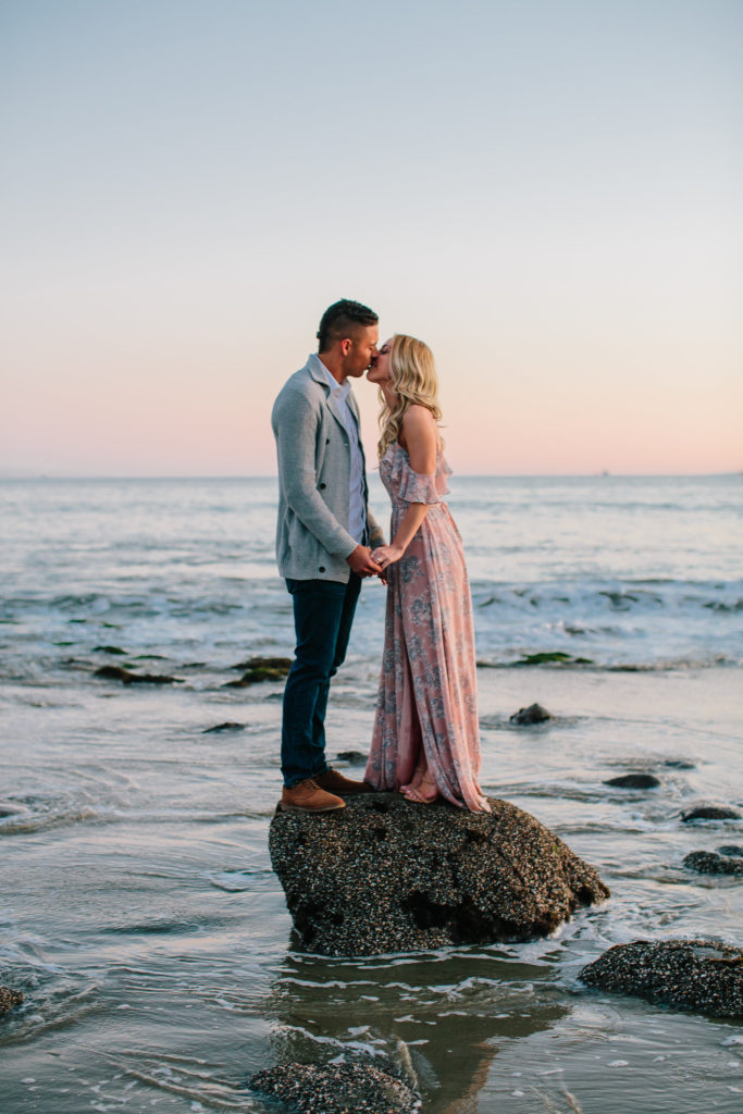 As far as our outfits go, I was deciding between two dresses. The dress I am wearing in the pictures and this one. Since these photos are intimate and romantic, I wanted our outfits to portray that, but also when looking back at these photos years from now I didn’t want to have that moment of “what the heck was I wearing” haha. Both of the dresses I was choosing from gave that romantic vibe, but I am glad I went with the one I am wearing because it went with the sunset perfectly!